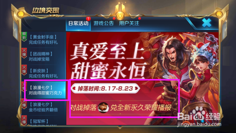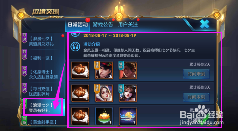 点击【浪漫七夕-登录有好礼】,在这里,天天签到,可以获得4个巧克力。