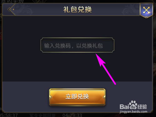如许我们就会看到一个礼包兑换窗口,点击窗口中的对话框。