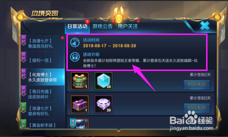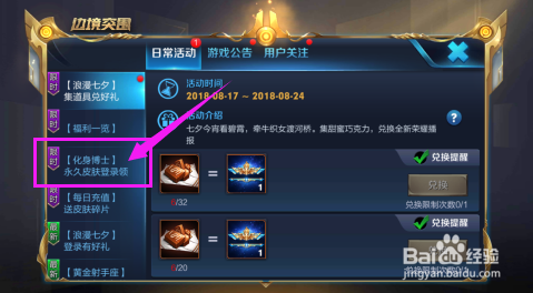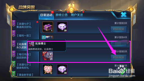 在这里我们可以看到活动时候为17-28号,只要累计登录5天就能领取化身博士这个皮肤。