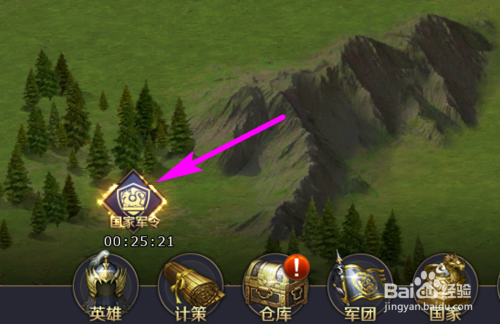 国战并不是任何时辰都可以打的,国战进口天天只开启两次,一次是午时12-13点,一次是晚上的20点-21点摆布。国战进口开启后,在游戏本家儿页面上会显示【国度军令】几个字,点击它。