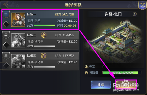 然后就能看到一座城池,点击城池会在城池的外围和中间位置上方呈现×,点击城池外围的×(不克不及点中心的×,必需先攻破城墙后才能点击城池中间的×)。