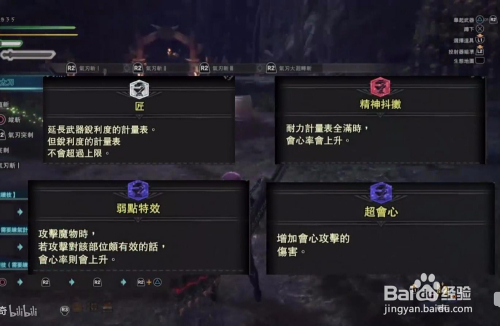 所以见切斩当作功后,红刃用气人跳劈斩,然后射中还低,还没有弱点无视。所以新手不建议玩太刀(据网友说 用太刀有黑魂的赶脚),其它的气刃斩、盘旋斩和以前一样不谙练的可以在游戏中多操练