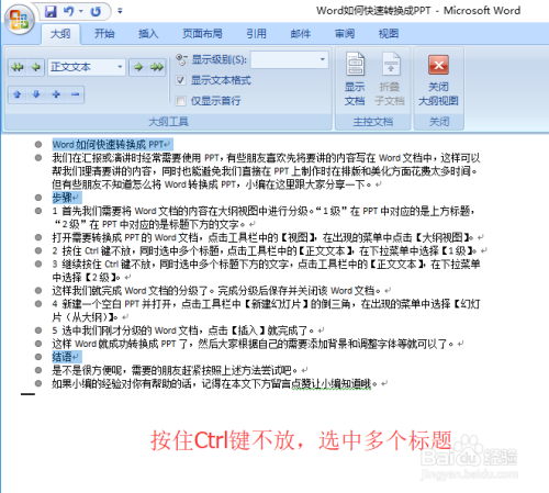 继续按住Ctrl键不放,同时选中多个题目下方的文字,点击东西栏中的【正文文本】,鄙人拉菜单中选择【2级】。