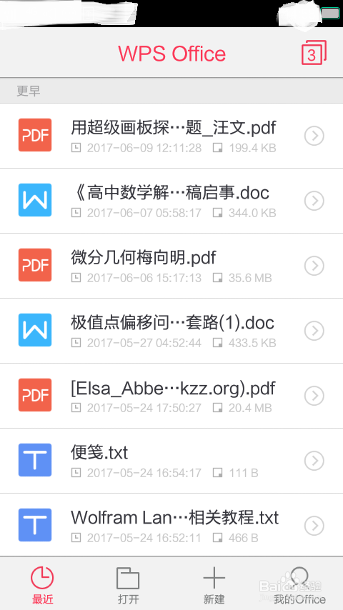 打开WPS,首先看到的是,我比来阅读过的文档目次。你刚安装,所以界面是空的。
