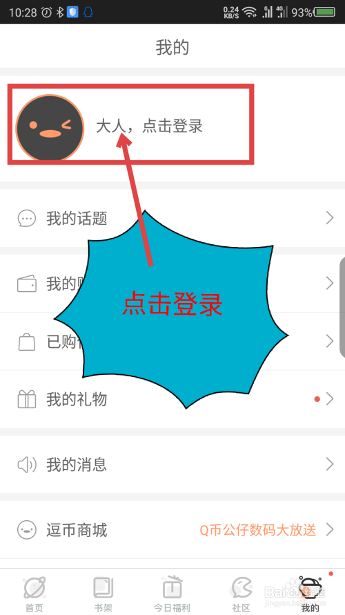 在我的界面,点击最上面的年夜人点击登录选项。操作如截图所示