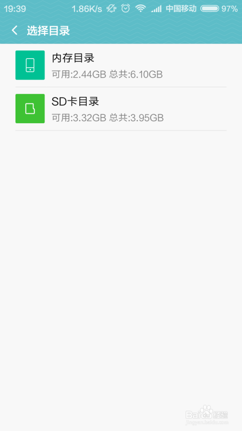 在接下来打开的标的目的导页面中,页面会主动打开系统文件办理路径,所以这里我们需要点击选择文件存储路径,若是手机中有SD卡的话,是可以选择SD卡中的文件的。