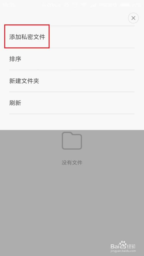 接下来,我们在弹出的菜单中,点击选择“添加私密文件”选项,点击之后我们就会进入添加私密文件(夹)标的目的导页面。