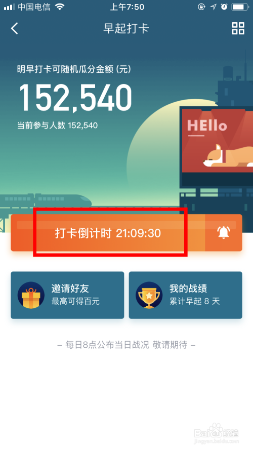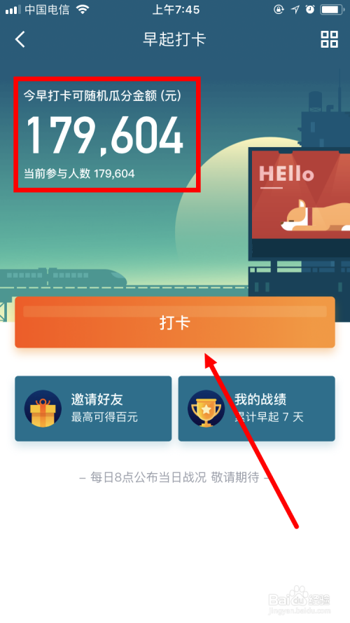 第二天早上准时点开活动页面,点击 打卡 。可以发现此时介入打卡的人数上升到了17万。