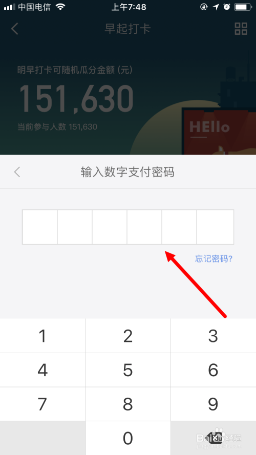 然后在活动页面,点击 付出1元介入挑战 。在此页面,还可以看到此时已经介入明早打卡活动的人数为15万摆布。
