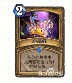 2费抽2个1攻侍从,我们卡组总共只有4个一攻侍从,别离为苦痛、绞肉车、石丘,只带一张水晶学,是可以确保可以或许抽到的!