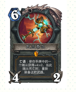 无线buff的关头兵器牌,6费4/2兵器,亡语buff手牌侍从4/2,等侍从灭亡再装备这把兵器,半斤八两于无线轮回!