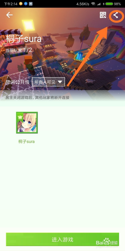 点击分享(箭头指的处所),也可以不消分享,因为这是房间,会有其他人来的,想要和洽基友一路的话分享给伴侣就行了如图1,2,然后你就可以起头游戏了。