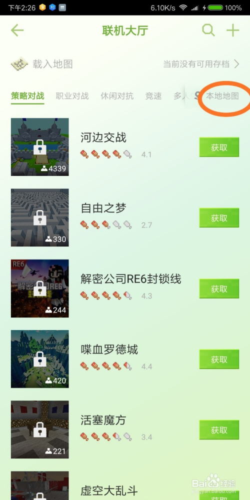打开游戏,点击联机年夜厅如图1,点击当地地图,然后点击当地联机