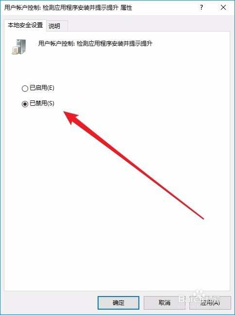 双击打开该设置项的属性窗口,在窗口中我们选择“已禁用”设置项,最后点击确定按钮即可。如许该帐户今后就不克不及再安装应用软件了。