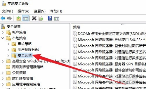 这时就会打开Windows10的当地平安策略窗口,在窗口中依次点击“平安设置/当地策略/平安选项”菜单项。
