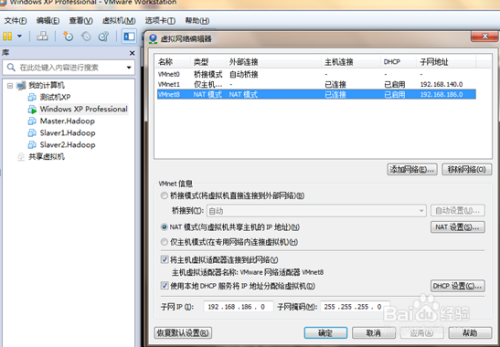 查看虚拟机安装时分派的收集情况,这边分陪给你的网段是192.168.186.0(这个会和本机的一个收集驱动法式同个网段,见第5步),所以,虚拟机设置装备摆设的IP地址应该是192.168.186.*,如:192.168.186.100,或者选择主动获取。