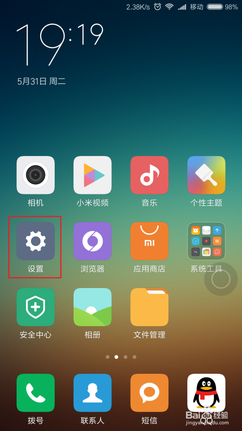 首先,请大师打开MIUI系统桌面上的应用图标,点击系统中的“设置”应用菜单,点击之后即可进入MIUI系统设置页面。