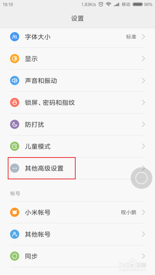 进入MIUI系统设置页面之后,点击页面中的“其他高级设置”选项即可进入系统高级设置页面。