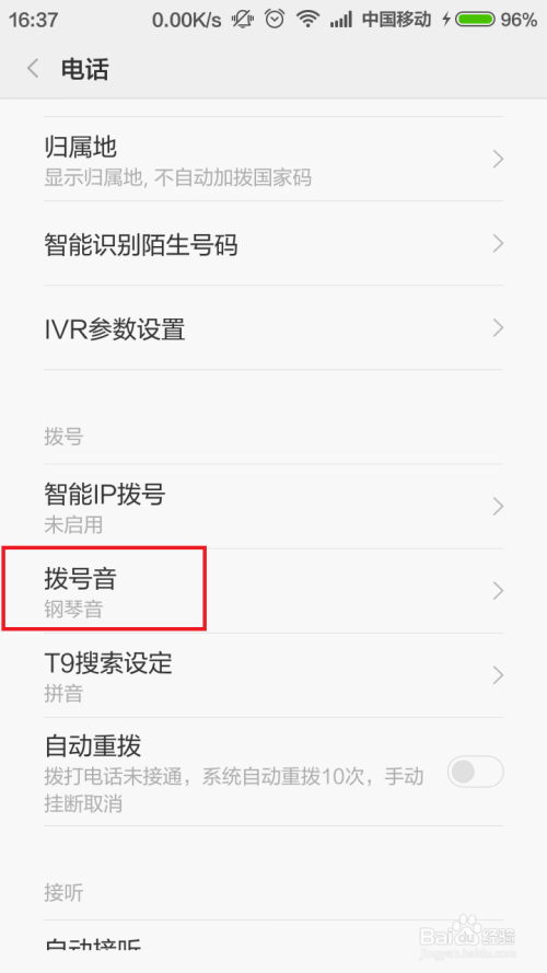 进入拨号应用设置界面今后,点击“拨号音”菜单选项,进入拨号音设置页面。