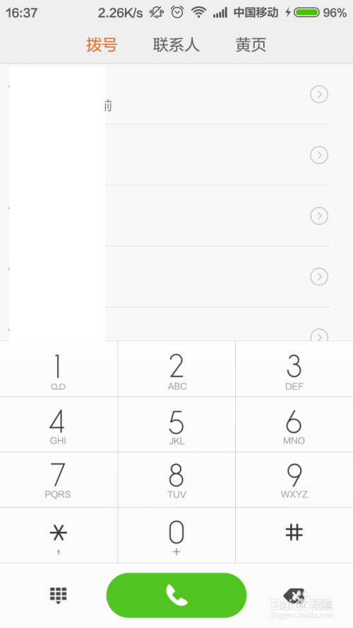 首先,请大师打开MIUI 6系统中的拨号键盘,也就是德律风应用,在该界面中按下菜单键,进入拨号设置页面。