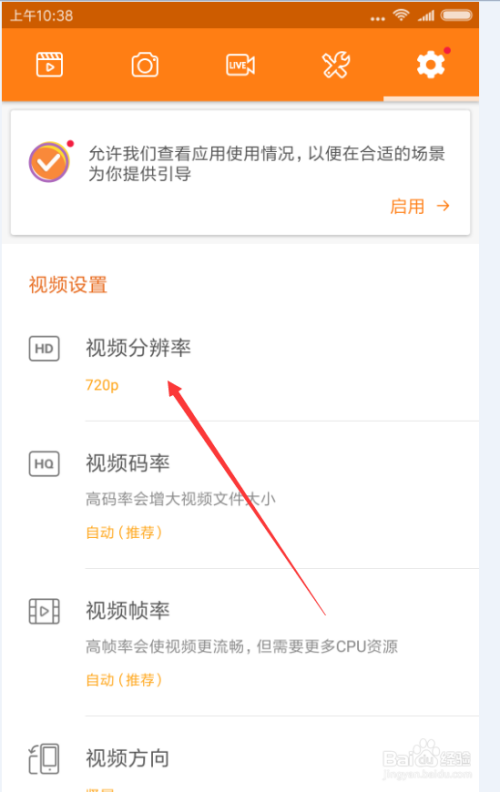 5. 设置分辩率的话,点击【视频分辩率】如图