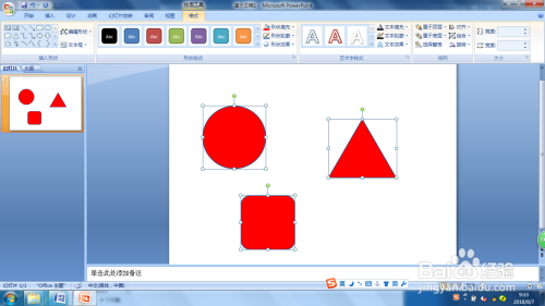 第三步:【按比例绘制、点窜外形】在PPT或Word中利用“外形”中的东西绘制一个正圆、正三角形、正方形等,需按着shift键进行绘制。