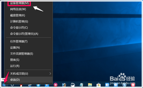 右键点击系统桌面左下角的【起头】,在起头的右键菜单中点击【设备办理器】;