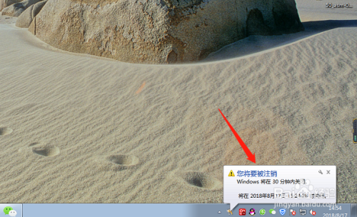 设置后右下角会有提醒,电脑会在半个小时关机,最后五分钟也会有一个提醒。如何设置了主动关机,悔怨了怎么办呢?请继续往下看。