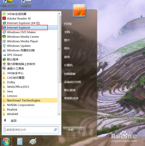 首先,在桌面上点击Windows开始菜单,点击“所有法式”按钮,找到“Internet Explorer”法式。