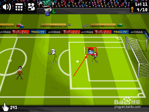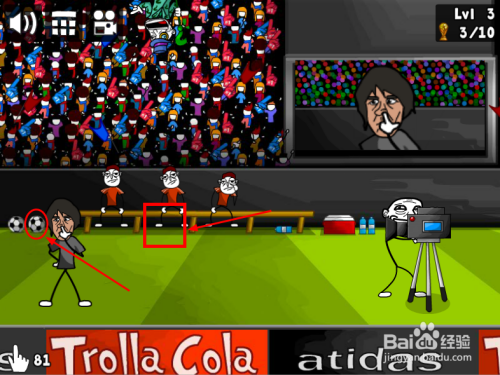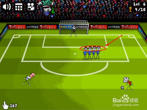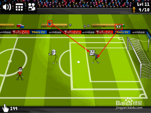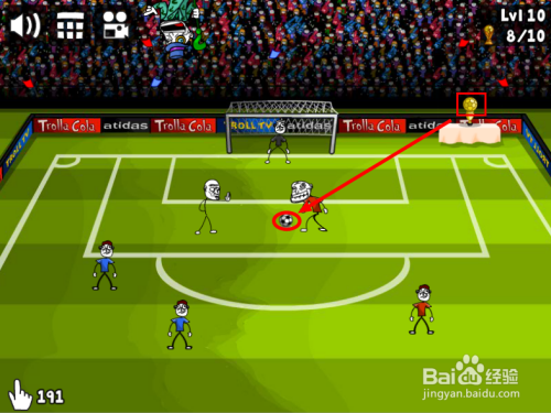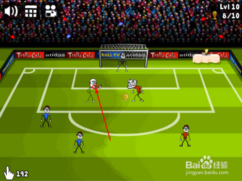 长按“球”,标的目的上往左移动(或将踢球的人往左滑动)