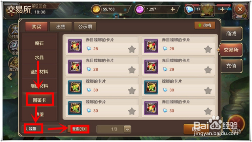 观光商人查理会不按期出售一些鉴卡片,可以日常多加存眷,出售时进行采办。操作步调:游戏本家儿界面点击“商城”——“观光商人”——“查理”,选中螳螂图鉴卡片进行采办。