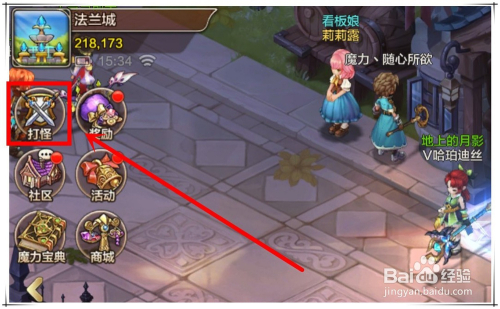 1.打开魔力宝物手游APP,登录游戏脚色,在游戏本家儿界面左侧,找到“打怪”选项,点击进入。