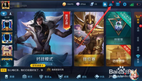 然后在游戏中可以看到右上角的老友按钮,这里点击老友的图片,如图所示