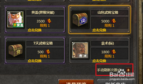 方式四:在公谈判店中兑换武将宝箱,进入公谈判店后,若是没有看到宝箱,需要手动刷新