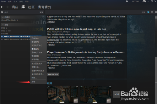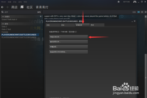 打开你电脑内的Steam客户端,选中绝地求生,右键选中属性。再点击当地文件,然后浏览当地文件。