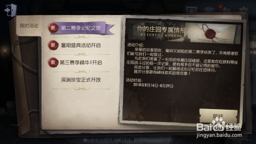 第五人格新赛季已经开启了不少时候,此刻有一个数据统计活动叫庄园专属谍报活动,可以获得小额线索奖励还可以查看本身玩游戏后的一些神奇数据。本次就给大师介绍怎么查看。