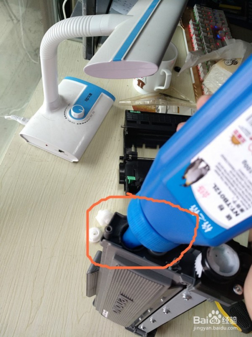 把以前粉盒里面粉倒完(注重:必然倒完,新粉跟旧粉不克不及夹杂用),然后打印机粉拆开,倒入撬开的小孔里面。(我们用的是格之格NT-TB012L粉,大师可以在淘宝上面买到,只要适配这个打印机的粉都可以或许用,好比天威、莱盛粉都行)