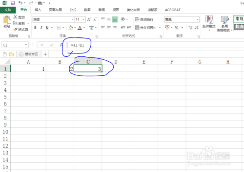 为了便于理解,以下列数据为例,C1单位格中输入乞降公式(A1和B1之和)。