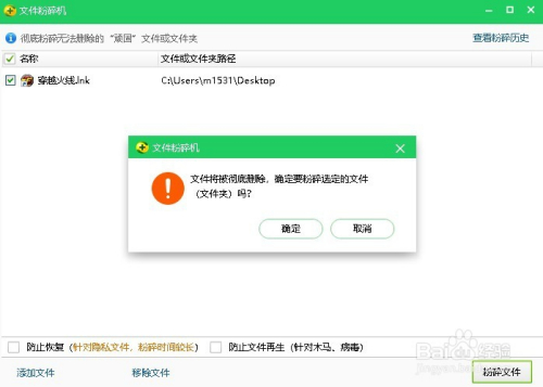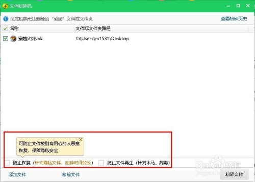 在这里我们也可以选择“防止恢复(针对隐私文件)”和“防止文件再生(针对木木马、病毒)”可以按照本身的洗好进行选择