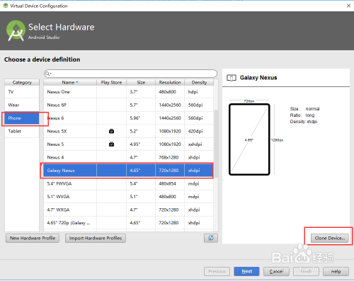 选择一个界说的设备,然后点击“Clone Device”,然后点击“Next”,如下图所示: