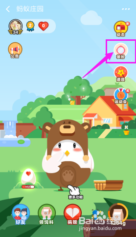 登录后,点击【蚂蚁庄园】。