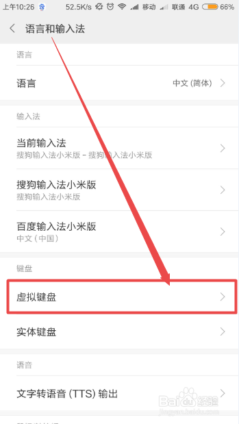 在打开的页面中可以看到一个 虚拟键盘 的选项,点击进去。