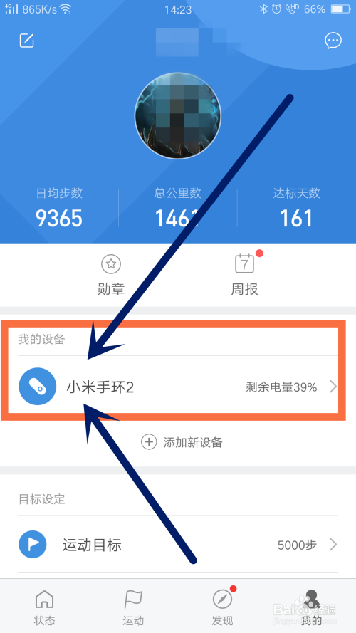 在利用小米手环2之前,需要在手机上下载小米活动软件,实现敌手环的节制。首先,点击打开小米活动APP并打开蓝牙和位置,如图所示