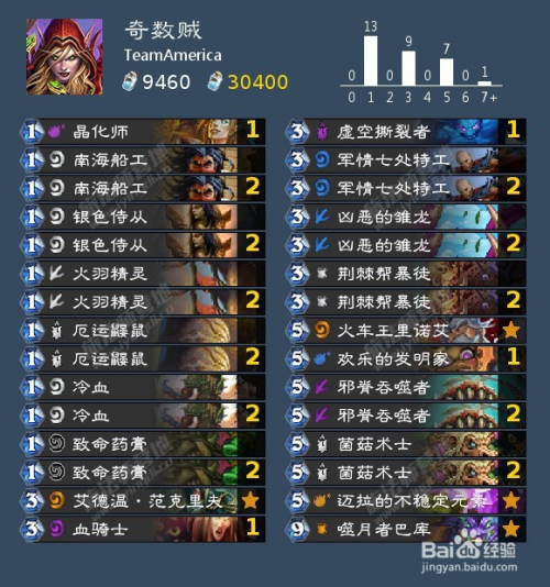 奇数贼打法:背工2费跳币单刷龙或大盗,排场有侍从4费跳币蘑菇buff,1+5刺杀花,斩杀火车王双冷血7费打14血。