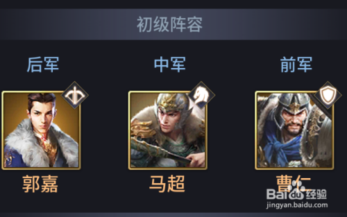 声势方面有两套方案分享,第一种是游戏初期与郭嘉和曹仁进行搭配。