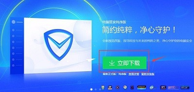 进入电脑管家官网,在官网首页就可以看到电脑管家纯净版的【当即下载】,点击【当即下载】就可以直接下载纯净版了。