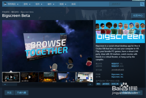 搜刮 “Bigscreen Beta”,安装该软件,当作功后可以利用该软件播放VR当地视频。
