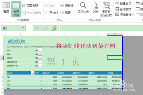 ②此时我们可以看到打印结果是两张,此中被中心的朋分线离隔了,我们只需将朋分线拖动到页面最右侧,此时页面就会酿成一页了,如图所示...
