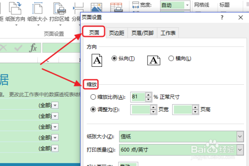 ②在该对话框,我们点击最前的“页面”-“缩放”,然后将下发的页宽和页高全数设置为1即可;