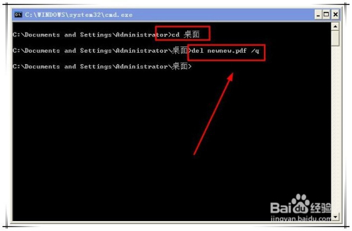 2.在cmd号令窗口,首先操纵cd 将当前目次切换到要更名文件地点目次,再操纵delete号令来删除文件。delete号令的格局: delete 路径+文件名 /q,此中/q参数暗示删除时不需要确认。